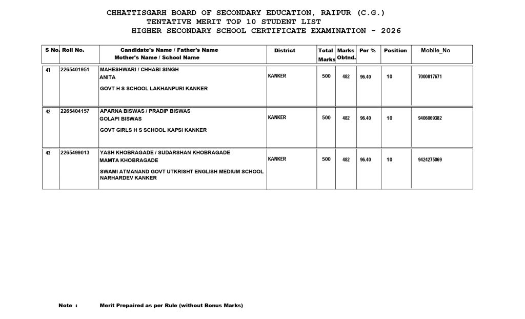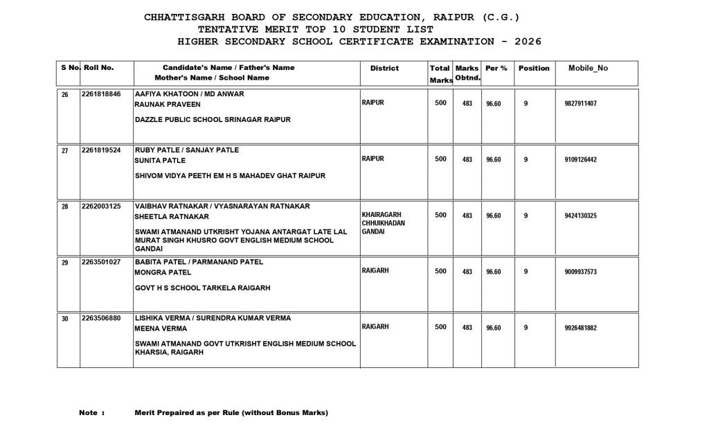 - होमपेज पर जाकर CGBSE Class 10 Result 2026 या CGBSE Class 12 Result 2026 के लिंक पर क्लिक करें.