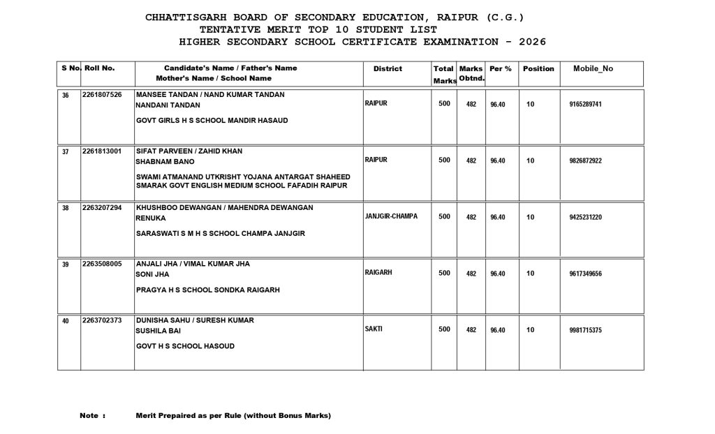 - ऑफिशियल वेबसाइट के अलावा स्टूडेंट्स एसएमएस के जरिए भी अपना रिजल्ट चेक कर सकते हैं. 10वीं का रिजल्ट देखने के लिए CG10 के साथ अपना रोल नंबर टाइप करें और 56263 पर भेज दें.