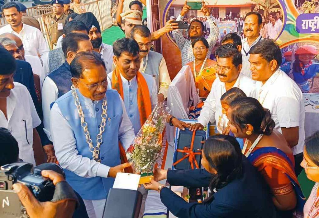 संस्कार शिक्षण संस्थान पिथौरा में कार्यरत बाल वैज्ञानिक खुशबू साहू द्वारा बनाए गए नए मॉडल हाईटेक मवेशी सेफ्टी डिवाइस का अवलोकन करते हुए विष्णु देव साय मुख्यमंत्री छत्तीसगढ़ शासन, योगेश्वर राजू सिन्हा विधायक महासमुंद, डॉ. संपत अग्रवाल विधायक बसना विनय कुमार लंगेह कलेक्टर, प्रभात कुमार पुलिस अधीक्षक, हेमंत रमेश नंदनवार सीईओ जिला पंचायत,विजय कुमार लहरे डीईओ, रेखराज शर्मा डीएमसी महासमुन्द ,संपा बोस एपीसी, सहित उपस्थित अधिकारी कर्मचारियों ने मॉडल की प्रशंसा की।