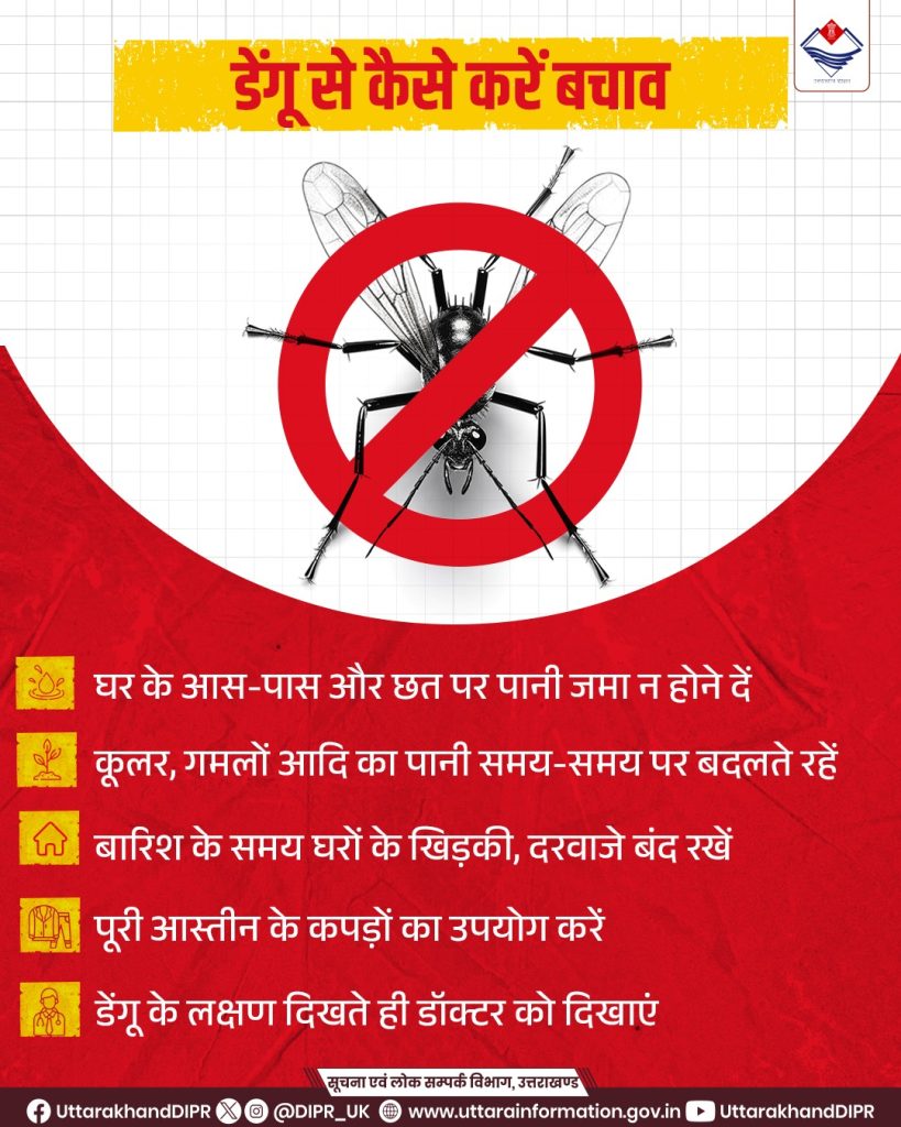 देहरादून. सीएम धामी ने डेंगू पर प्रभावी नियंत्रण के लिए भी सभी आवश्यक व्यवस्थाएं सुनिश्चित करने के निर्देश दिये हैं. उन्होंने कहा कि नियमित फॉगिंग के साथ ही डेंगू से बचाव के लिए जागरूकता अभियान चलाया जाए. अस्पतालों में बिजली की रोस्टिंग न करने और ग्रीष्मकाल में प्रदेश में बिजली और पानी की सुचारू आपूर्ति रखने के निर्देश भी मुख्यमंत्री ने दिए हैं. उन्होंने कहा कि प्रदेश में पेयजल की पर्याप्त उपलब्धता सुनिश्चित करने के लिए सभी आवश्यक व्यवस्था सुनिश्चित की जाए. मुख्यमंत्री ने कहा कि आगामी कैंचीधाम वार्षिकोत्सव के दृष्टिगत भी सड़कों की बेहतर स्थिति के साथ पार्किंग की पर्याप्त व्यवस्था सुनिश्चित की जाए.