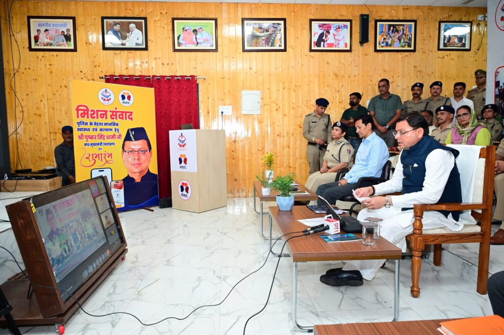 मुख्यमंत्री पुष्कर सिंह धामी ने शनिवार को खटीमा में पुलिस के कार्मिकों के लिए आयोजित विशेष कार्यक्रम ‘मिशन संवाद’ का शुभारंभ किया. इस मौके पर मुख्यमंत्री ने पुलिसकर्मियों से बातचीत की. इस दौरान ‘संवाद ऐप’ का भी लोकार्पण किया, जो पुलिसकर्मियों को मानसिक स्वास्थ्य संबंधी परामर्श, तनाव प्रबंधन, और भावनात्मक सहयोग प्राप्त करने में सहायक सिद्ध होगा.