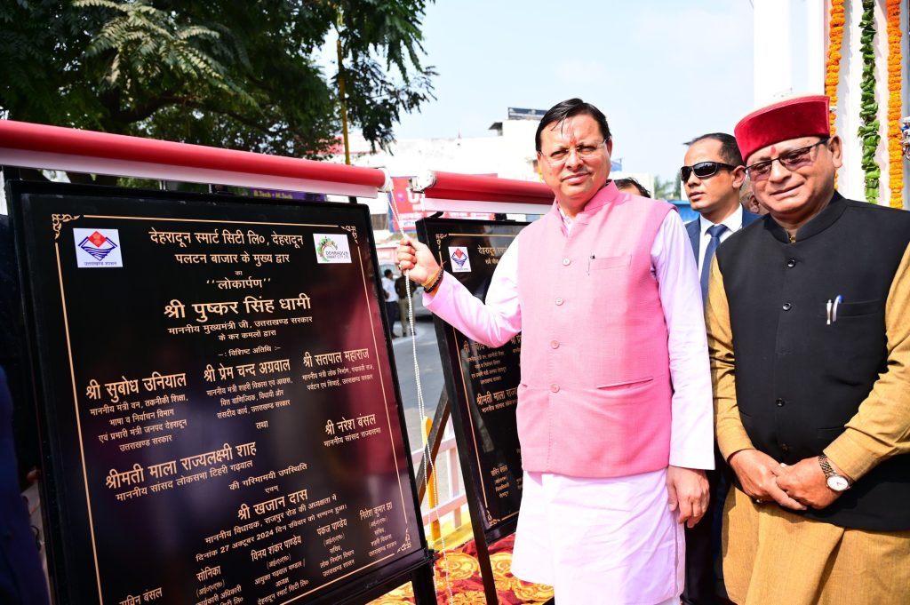मुख्यमंत्री पुष्कर सिंह धामी ने रविवार को स्मार्ट सिटी परियोजना के अन्तर्गत, सर्वेचौक, ईसी रोड देहरादून में 66 फीट ऊंचे राष्ट्रीय ध्वज स्मारक का लोकार्पण किया. इस अवसर पर उन्होंने पलटन बाजार के मुख्य द्वार का भी लोकार्पण किया.