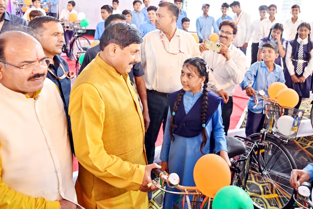 सीएम ने समग्र शिक्षा अभियान के अंतर्गत स्कूली बच्चों को नि:शुल्क साइकिल वितरण के 2 दिवसीय अभियान का शुभारंभ करते हुए 50 विद्यार्थियों को नि:शुल्क साइकिलें वितरित कीं। मुख्यमंत्री का विद्यार्थियों ने एक धुन में साइकिल की घंटी बजाकर अपनी प्रसन्नता व्यक्त की और उनका अभिवादन किया। अभियान के पहले दिन विभिन्न जिलों में विद्यार्थियों को 4 लाख 30 हजार साइकिलें बांटी गईं। मुख्यमंत्री ने गुरु पूर्णिमा के राज्य स्तरीय कार्यक्रम में गुरुजनों को सम्मानित भी किया। उन्होंने गुरु पूर्णिमा के अवसर पर उल्लेखनीय उपलब्धियों के लिए शिक्षक मनोज सोहनी, देवेंद्र बंसल, डॉ. एस.के. पाल, मनोज कौशल, सुरीत दास बनोथे, शुभांगी नामड़े, सारिका शर्मा, वंदना रामचंदानी, योगेश विश्नोई और बख्तौर खान को अंगवस्त्र और श्रीफल भेंटकर सम्मानित किया। इस अवसर पर सांदीपनि विद्यालय पर केंद्रित लघु फिल्म का प्रदर्शन भी किया।