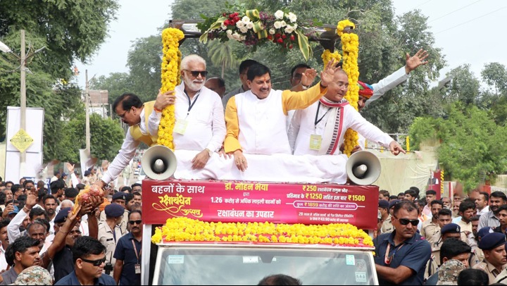मुख्यमंत्री डॉ मोहन यादव, अर्जुन तिराहा से बस स्टैंड तक आयोजित भव्य रोड-शो में शामिल हुए। जहां सीएम का नगरवासियों ने जोरदार और भव्य स्वागत किया। रोड-शो के दौरान मुख्यमंत्री जनसमूह के बीच पहुंचे और नागरिकों का स्नेहपूर्वक अभिवादन स्वीकार किया। पूरे मार्गपर जगह-जगह स्वागत मंच बनाए गए थे, जहां नगरवासियों ने ढोल-नगाड़ें बजाकर स्वागत किया। बहनों ने कलश यात्रा निकाली और पुष्पवर्षा कर अपने भैया डॉ मोहन का आत्मीय स्वागत किया। नगर में उमड़ी भीड़ और उत्साहपूर्ण वातावरण ने पूरे आयोजन को ऐतिहासिक बना दिया।