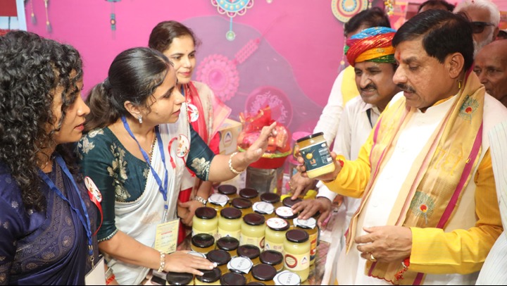 कार्यक्रम स्थल पर नीति आयोग के “संपूर्णतः अभियान” के अंतर्गत आयोजित विशेष आयोजन ‘आकांक्षा हॉट’ का शुभारंभ हुआ। यह आयोजन 07 अगस्त से 10 अगस्त तक चलेगा, जिसमें जिले की स्थानीय प्रतिभाओं और उत्पादों को एक नया मंच प्रदान किया गया है। मुख्यमंत्री ने प्रदर्शनी का अवलोकन कर स्व-सहायता समूहों के तैयार किए गए हस्तशिल्प, खाद्य उत्पादों और अन्य सामग्रियों का अवलोकन कर सराहना की। उन्होंने कहा कि इस प्रकार के आयोजन “वोकल फॉर लोकल” अभियान को बल देने के साथ ग्रामीण अर्थव्यवस्था को मजबूती देने में भी सहायक हैं। कार्यक्रम में महिला स्व-सहायता समूहों, ग्रामीण उत्पादकों, पारंपरिक कारीगरों और विभिन्न विभागों के निर्मित उत्पादों की आकर्षक प्रदर्शनी लगाई गई। इस पहल का उद्देश्य महिलाओं को आत्मनिर्भर बनाना, ग्रामीण उद्यमिता को प्रोत्साहन देना और स्थानीय उत्पादों को बाजार से जोड़ना है।