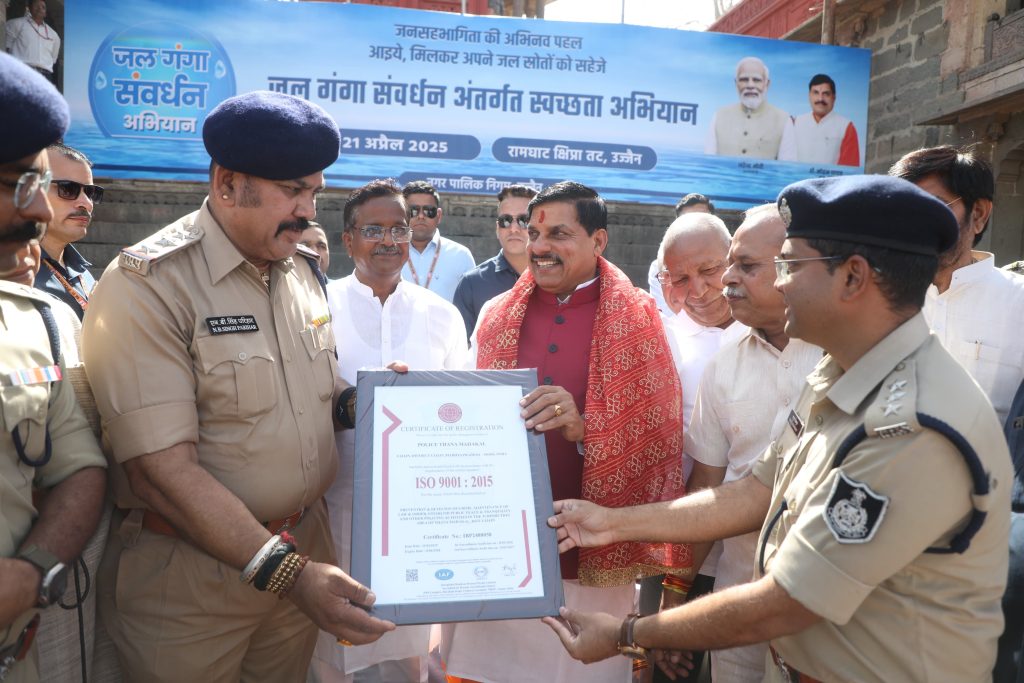 वहीं सीएम डॉ मोहन ने ने शिप्रा के रामघाट पर सालामतपुर से आए पंचकोशीय यात्रियों का स्वागत कर यात्रा का शुभारंभ कराया। इस दौरान नगर निगम के सफाई मित्रों को भी सम्मानित किया। साथ ही महाकाल थाने को आईएसओ सर्टिफिकेट मिलने पर मुख्यमंत्री ने पुलिस को बधाई दी और उन्हें प्रशस्ति पत्र दिया।