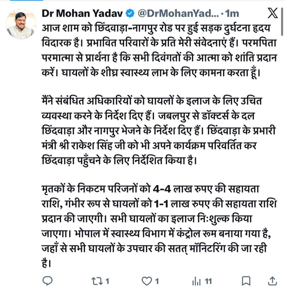ये भी पढ़ें: MP के छिंदवाड़ा में बड़ा हादसा: 10 यात्रियों की दर्दनाक मौत, 40 से ज्यादा लोग घायल; वीडियो आया सामने