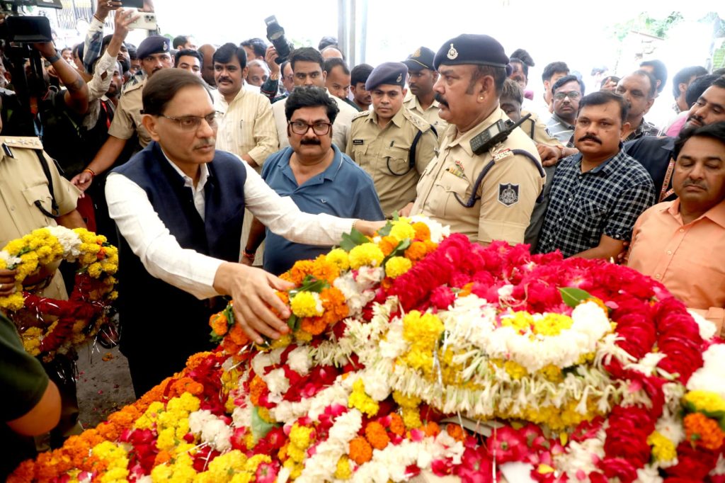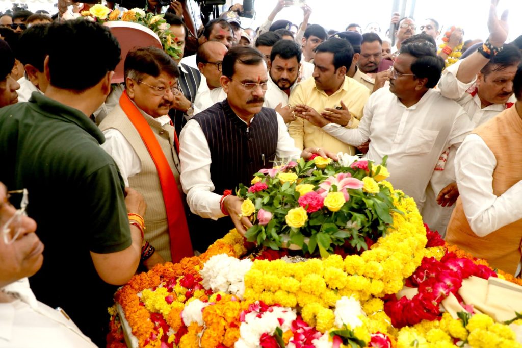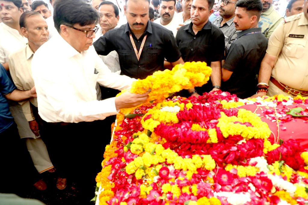 राकेश चतुर्वेदी, भोपाल। मध्य प्रदेश के मुख्यमंत्री डॉ. मोहन यादव के पिता सेठ पूनमचंद यादव आज बुधवार को पंचतत्व में विलीन हो गए। सीएम ने पिता को नम आखों से विदाई दी। उनके बड़े भाई ने पिता को मुखाग्नि दी। इससे पहले अंतिम यात्रा निकाली गई जिसमें कर्नाटक के राज्यपाल, केंद्रीय मंत्री शिवराज सिंह चौहान समेत कई हस्तियां शामिल हुईं।