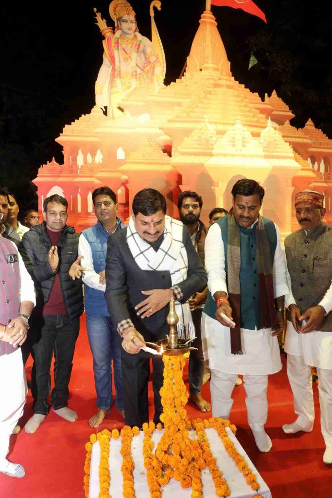 मुख्यमंत्री डॉ. मोहन यादव ने शुक्रवार शाम को मालवीय नगर में अयोध्या में भगवान श्रीराम की प्राण प्रतिष्ठा के एक वर्ष पूरा होने की पूर्व संध्या पर मंदिर की प्रतिकृति का दीप प्रज्ज्वलित कर शुभारंभ किया। मुख्यमंत्री ने सभी सनातनधर्मियों को बधाई औरशुभकामनाएं दीं। इस अवसर पर हुजूर विधायक रामेश्वर शर्मा और श्रद्धालु मौजूद रहे।