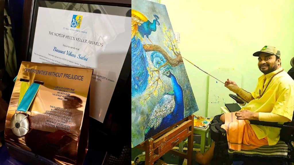 रायपुर. हर रेखा में छिपा है एक संदेश, सिंगार सिर्फ रूप नहीं यह आत्मविश्वास का प्रतिवेश है. आत्मविश्वास से परिपूर्ण और अनेक बच्चों और युवाओं के लिए प्रेरणास्त्रोत का कार्य कर रहे धमतरी जिले के कुरूद में रहने वाले दिव्यांग समाजसेवी और चित्रकार बसंत साहू को मुख्यमंत्री विष्णुदेव साय ने फोन करके जन्मदिन की बधाई देने के साथ ही हेलन केलर अवार्ड 2024 से सम्मानित होने पर बधाई दी है.
