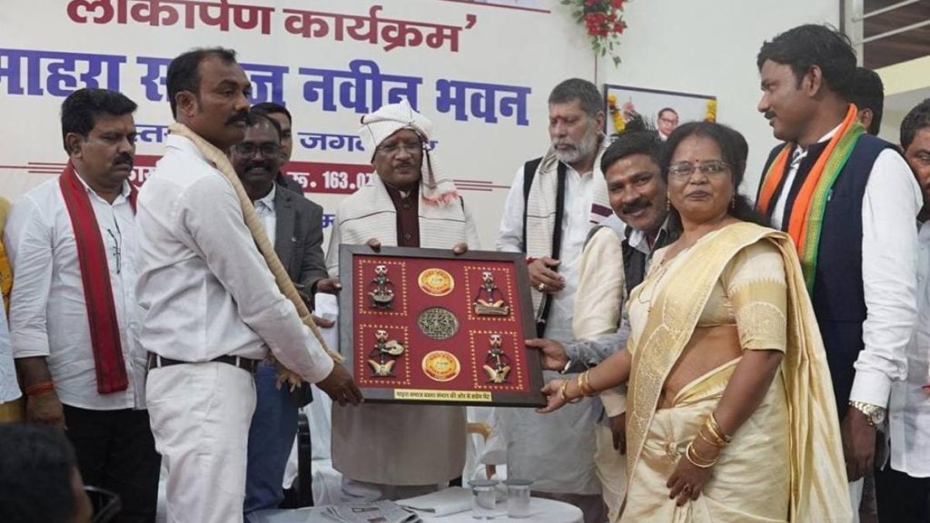 रायपुर। मुख्यमंत्री विष्णुदेव साय ने आज जगदलपुर के गुरु गोविंद सिंह वार्ड में एक करोड़ 63 लाख रुपए की लागत से निर्मित माहरा समाज के नवनिर्मित सामाजिक भवन का लोकार्पण किया। इस अवसर पर मुख्यमंत्री साय का पारंपरिक मोहरी बाजा के साथ भव्य स्वागत किया गया। माहरा समाज के सदस्यों ने उत्साहपूर्वक मुख्यमंत्री साय को पारंपरिक माहरा पाटा पहनाकर सम्मानित किया। मुख्यमंत्री साय ने फीता काटकर भवन का विधिवत उद्घाटन किया और इस ऐतिहासिक क्षण में आमंत्रण एवं आत्मीय स्वागत के लिए समाज के प्रति आभार व्यक्त किया।