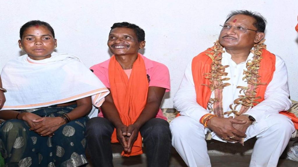 रायपुर। पहाड़ी कोरवा के जनमन आवास में मुख्यमंत्री विष्णु देव साय के पहुंचने पर परिवार ने पारंपरिक रीति रिवाज और सरई फूल की माला पहनाकर उनका आत्मीय स्वागत किया। दरअसल मुख्यमंत्री साय आज सुशासन तिहार के अंतर्गत अचानक बलरामपुर-रामानुजगंज जिला मुख्यालय से लगभग 70 किमी दूर सुदूरवर्ती पहाड़ी कोरवा ग्राम हरगवां ढोढरीकला पहुंचे थे, जहां ग्रामीणों से चौपाल में संवाद के बाद मुख्यमंत्री पीएम जनमन योजना के तहत दो हितग्राहियों के नवनिर्मित आवास में जाकर उसकी गुणवत्ता देखी। लहंगू पहाड़ी कोरवा के घर पहुंचने पर पारंपरिक रीति-रिवाजों के साथ उनका स्वागत किया गया। लहंगू और उनकी पत्नी ने सरई फूलों की माला पहनाकर आत्मीयता से मुख्यमंत्री का अभिनंदन किया।