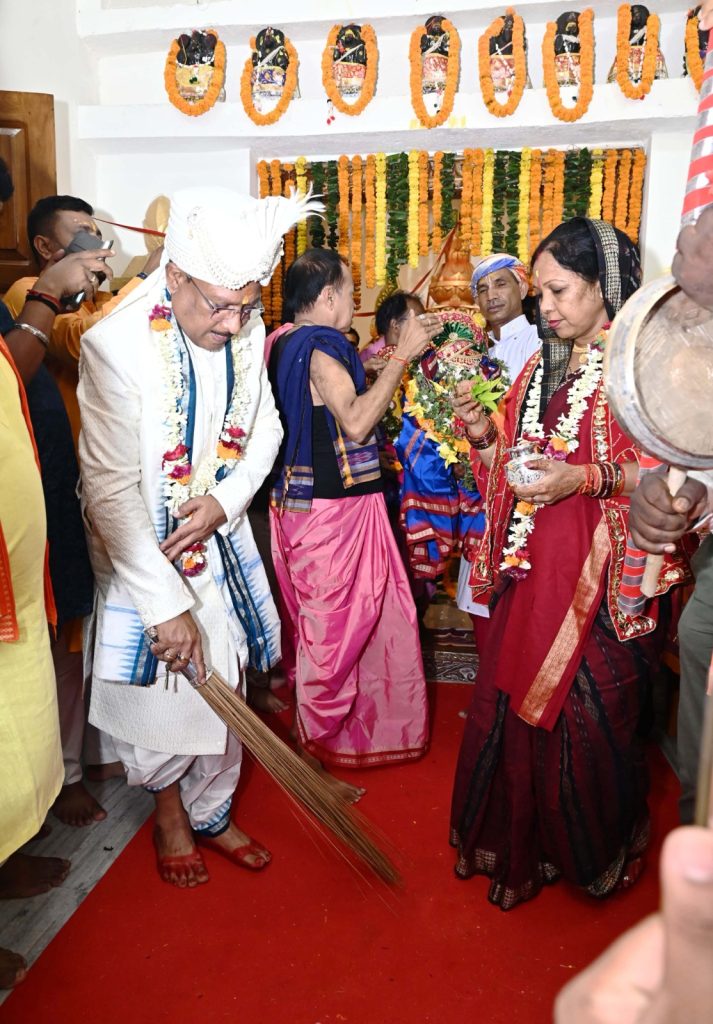 रायपुर। जशपुर जिले के ऐतिहासिक और प्राचीन श्री जगन्नाथ मंदिर दोकड़ा में इस वर्ष भी रथयात्रा महोत्सव का आयोजन परंपरागत श्रद्धा, भक्ति और भव्यता के साथ किया गया। मंदिर से रथ यात्रा के रवाना होने से पहले मुख्यमंत्री विष्णुदेव साय एवं उनकी धर्मपत्नी कौशल्या देवी साय ने जगन्नाथ मंदिर में पूरे विधि-विधान से भगवान श्री जगन्नाथ, भाई बलभद्र एवं बहन सुभद्रा की पूजा-अर्चना कर प्रदेशवासियों के सुख, समृद्धि और कल्याण की मंगलकामना की। मुख्यमंत्री विष्णुदेव साय ने झाडू से रथयात्रा के मार्ग को बुहारकर छेरा-पहरा की रस्म निभाई।