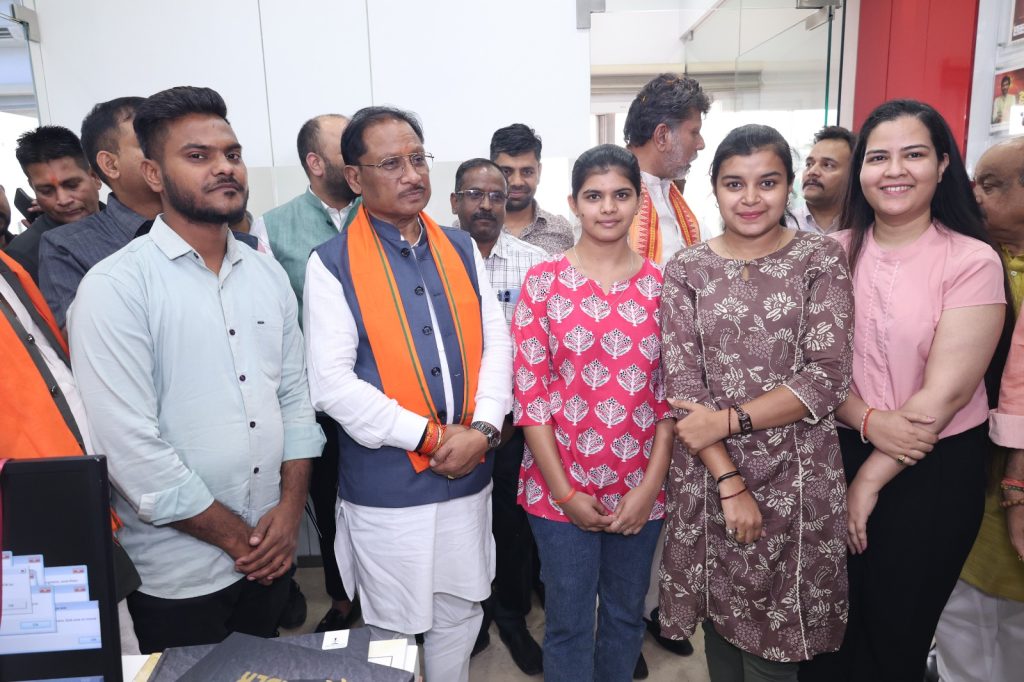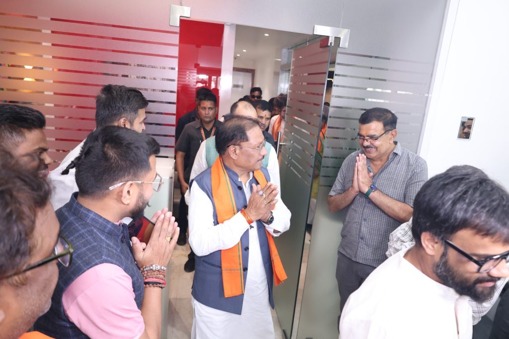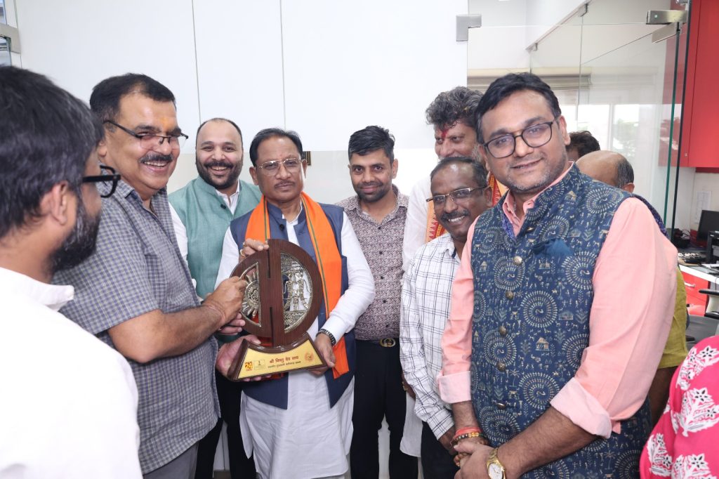 मुख्यमंत्री विष्णुदेव साय के दफ्तर पहुंचने पर संस्थान के चेयरमैन नमित जैन ने पुष्पगुच्छ देकर उनका स्वागत किया। इस मौके पर एडिटोरियल डायरेक्टर मनोज सिंह बघेल ने भी मुख्यमंत्री का स्वागत किया। वहीं डायरेक्टर अमित जैन, सलाहकार संपादक संदीप अखिल दुबे, रेजिडेंट एडिटर आशीष तिवारी और राजनीतिक संपादक डॉक्टर वैभव शिव पांडे ने भी उनका अभिनंदन किया।