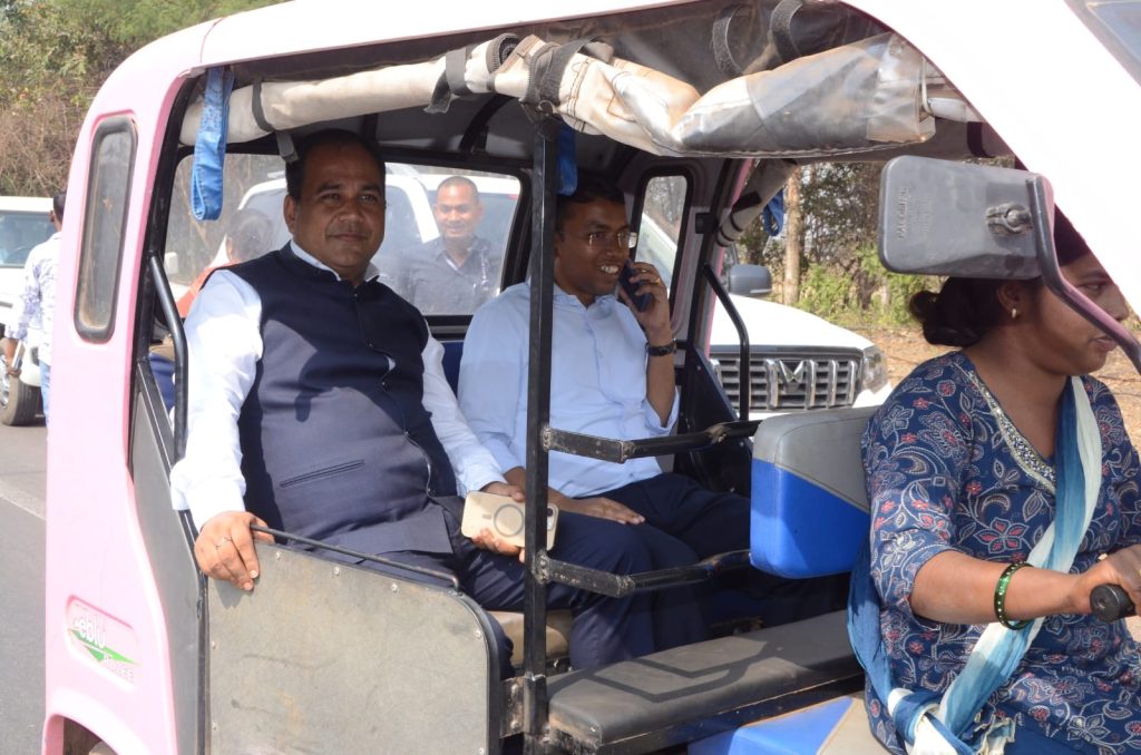 आरंग ब्लॉक भ्रमण के दौरान कलेक्टर डॉ. गौरव सिंह और जिला पंचायत सीईओ कुमार बिश्वरंजन ने मार्ग में चलते पिंक ई-रिक्शा को रुकवाया और उसमें सवारी की। ग्राम रीको से अंतरराष्ट्रीय क्रिकेट स्टेडियम होते हुए ग्राम परसदा तक करीब 12 किलोमीटर की यात्रा इसी ई-रिक्शा से की गई।
