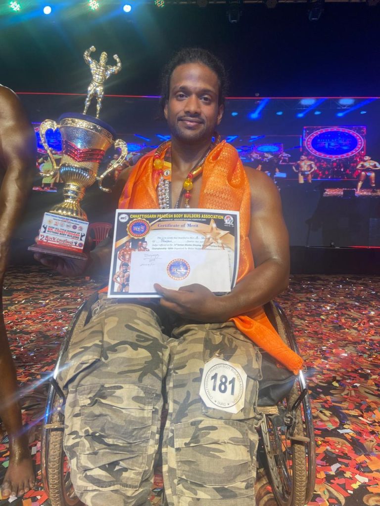 दुर्ग जिले के भिलाई में आयोजित मिस्टर छत्तीसगढ़ बॉडीबिल्डिंग प्रतियोगिता में शिवा राव ने शानदार प्रदर्शन करते हुए दूसरा स्थान हासिल किया और सिल्वर मेडल अपने नाम किया। प्रतियोगिता में कई सक्षम प्रतिभागियों के बीच मंच पर उतरना ही अपने आप में बड़ी चुनौती थी, लेकिन शिवा ने आत्मविश्वास और कड़ी तैयारी के दम पर जजों और दर्शकों का ध्यान अपनी ओर खींच लिया। उनकी फिटनेस, मसल कंट्रोल और मंच पर प्रस्तुति ने सभी को प्रभावित किया।