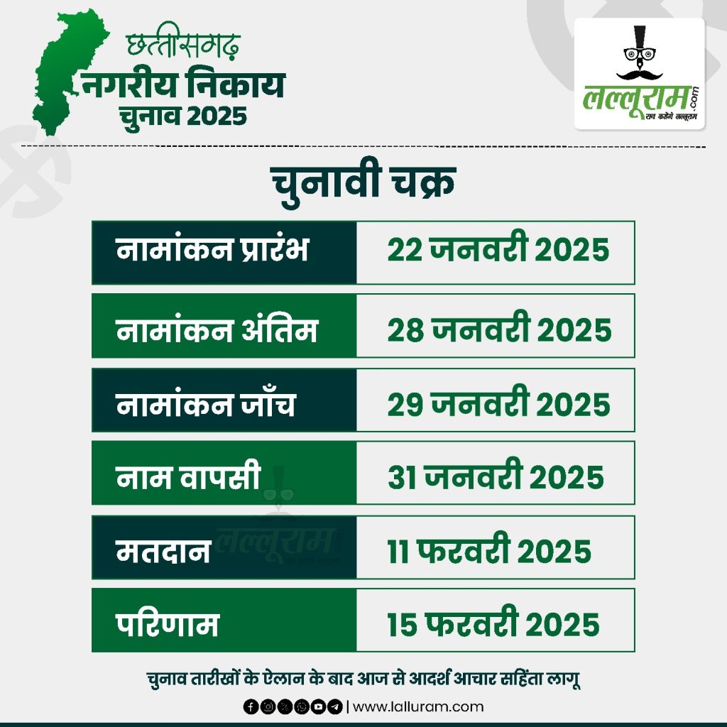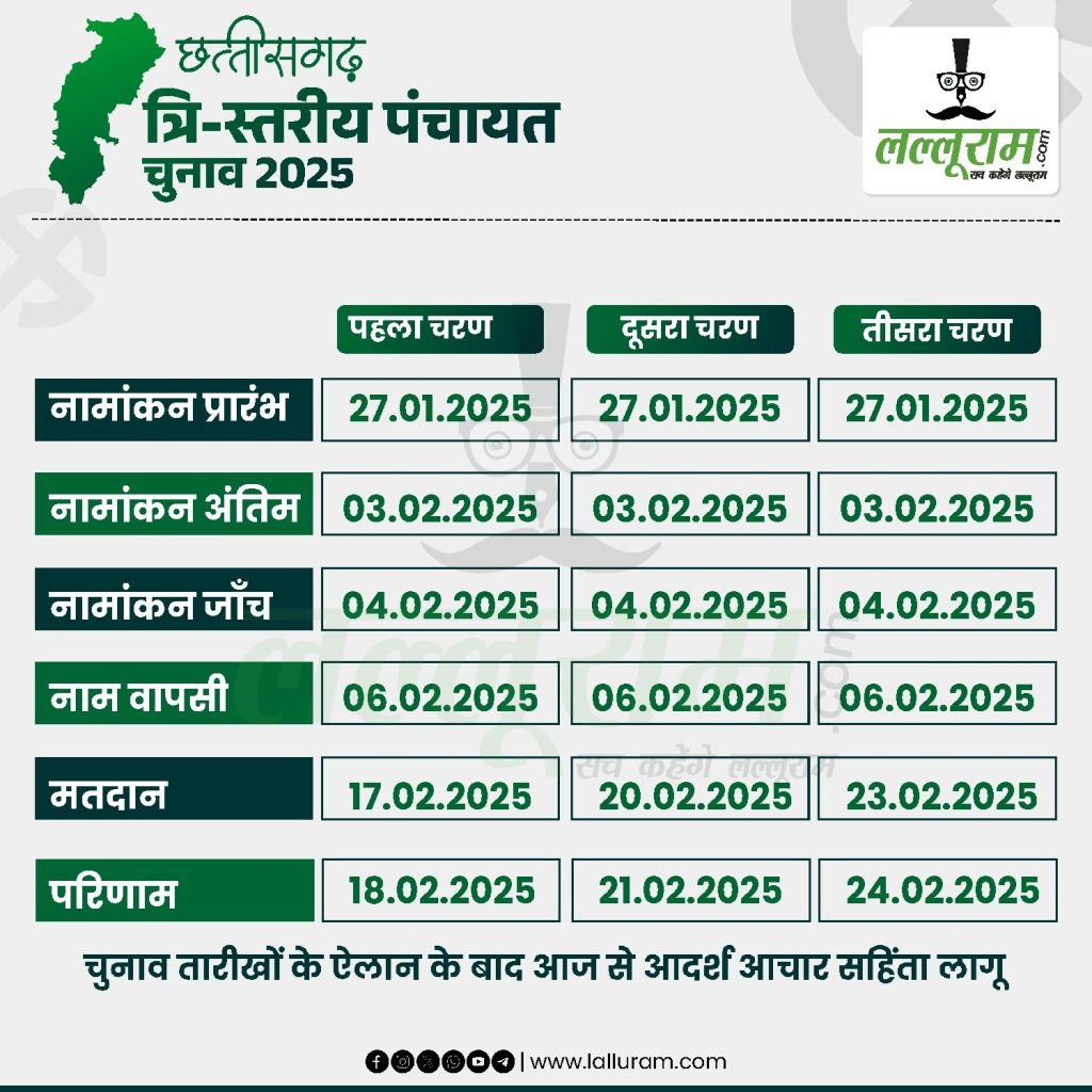 प्रेस कॉन्फ्रेंस में राज्य निर्वाचन आयोग ने नगरीय निकाय चुनाव 2025 का 15 फरवरी को, त्रिस्तरीय पंचायत चुनाव में पहले चरण का 18 फरवरी, दूसरे चरण का 21 फरवरी और अंतिम चरण का 24 फरवरी को परिणाम घोषणा की तिथि का ऐलान किया है. इसपर अब कांग्रेस ने असहमति जताई है, जिसके लिए अब निर्वाचन आयोग को पत्र लिखेगी.