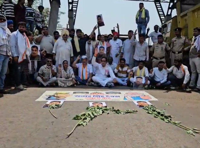 नितिन नामदेव, रायपुर। पूर्व विधायक विकास उपाध्याय के नेतृत्व में आज सैकड़ों कांग्रेस कार्यकर्ताओं और आमजनों ने कुम्हारी टोल प्लाजा पर अवैध वसूली के खिलाफ अनोखा प्रदर्शन किया. इस दौरान इसे ‘भारतीय जनता पार्टी गब्बर सिंह टैक्स वसूली’ का नाम देते हुए बीजेपी सरकार पर जमकर निशाना साधा गया. प्रदर्शन में टोल प्लाजा के अधिकारियों और कर्मचारियों को ‘बेशर्म का फूल’ भेंट किया गया, जबकि आम जनता को गुलाब का फूल देकर अनोखा प्रदर्शन किया गया.