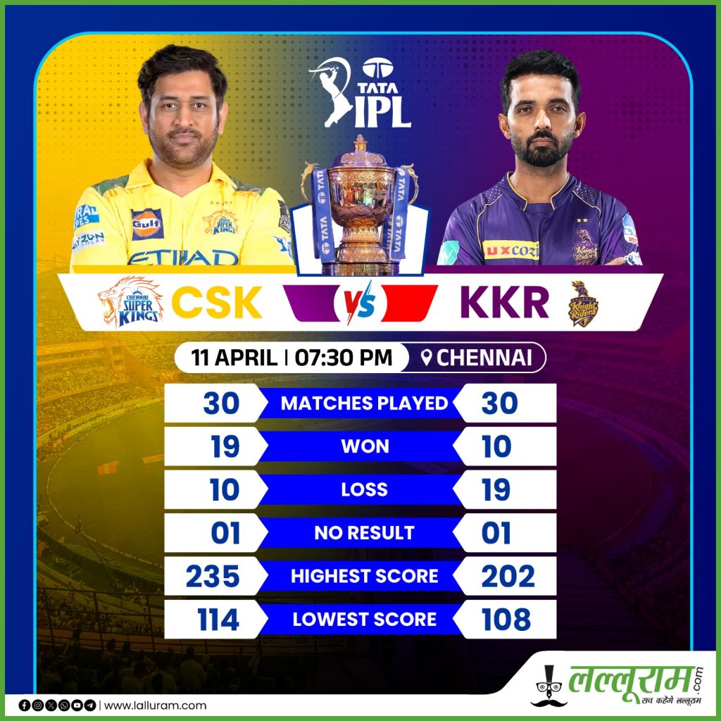 CSK vs KKR, IPL 2025 : इंडियन प्रीमियर लीग 2025 में आज 25वां मुकाबला चेन्नई सुपर किंग्स और कोलकाता नाइट राइडर्स के बीच होगा. यह मुकाबला शाम 7:30 बजे से एमए चिदंबरम स्टेडियम (चेपॉक) में खेला जाएगा. मैच का टॉस शाम 7 बजे होगा. इस सीजन में अब महेंद्र सिंह धोनी सीएसके की कप्तानी संभालते नजर आएंगे. इंजरी के कारण ऋतुराज गायकवाड़ आईपीएल 18 से बाहर हो गए हैं.