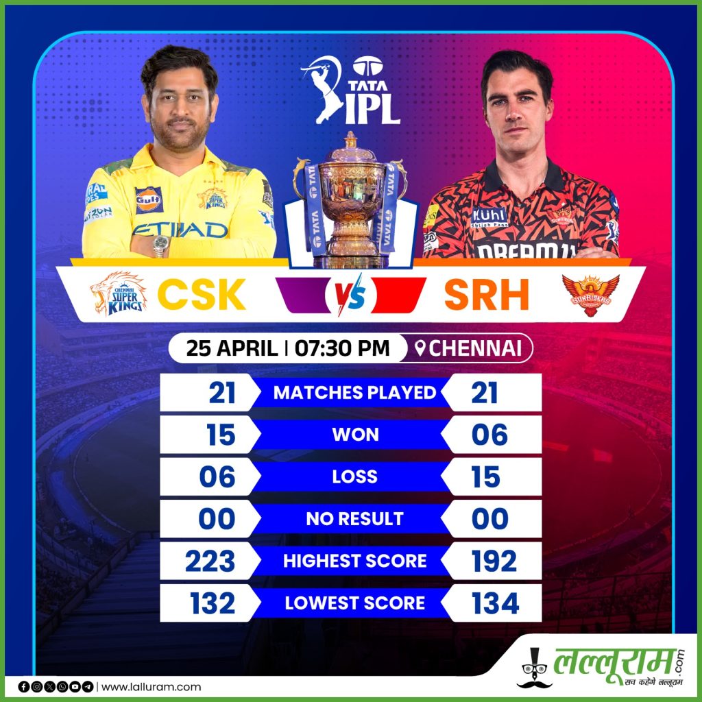 CSK vs SRH हेड-टू-हेड रिकॉर्ड (CSK vs SRH IPL 2025)