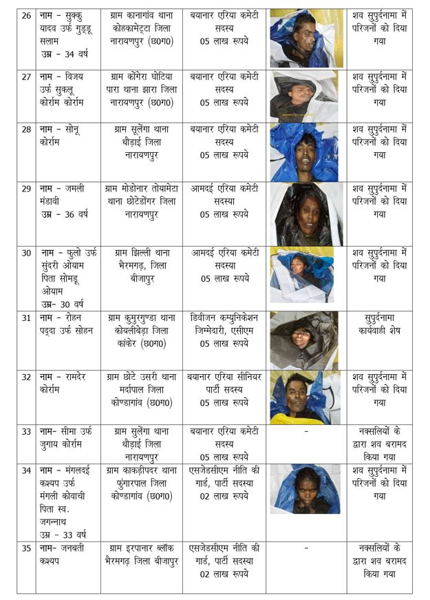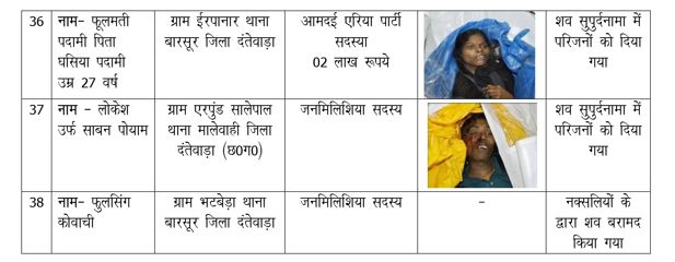 देखें मुठभेड़ में मारे गए सभी ईनामी नकसलियों की लिस्ट: