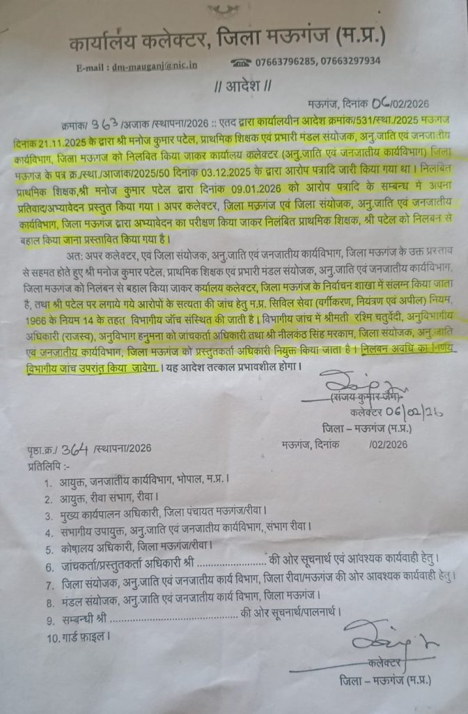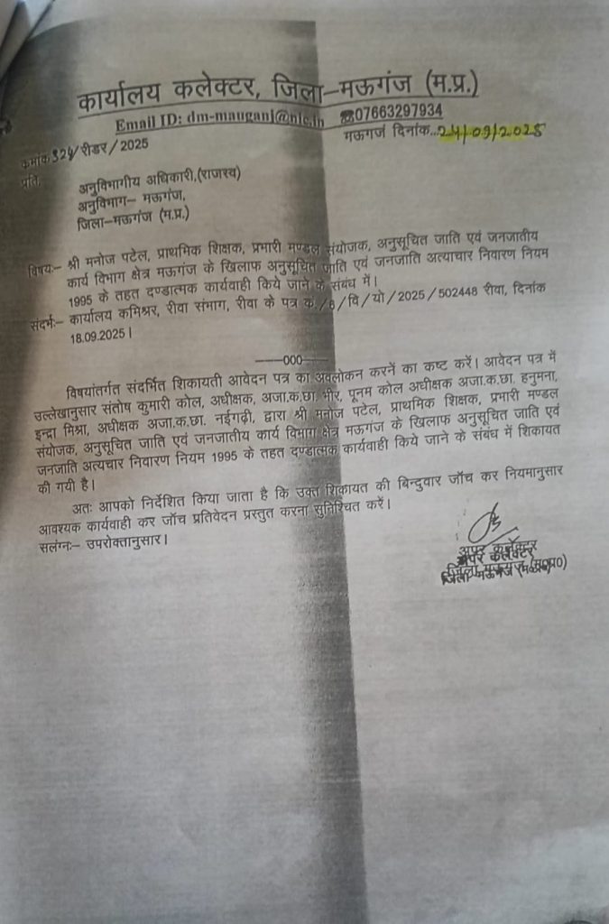 मामला 16 सितंबर 2025 का है। मनोज पटेल प्रभारी मंडल संयोजक के खिलाफ सुकवरिया कोल, पूनम कोल और इंद्रा मिश्रा जैसी वार्डन ने मोर्चा खोला था। आरोप कि जातिसूचक गालियां, एक लाख रुपये की रिश्वत की मांग और सबसे घिनौना आरोप-कन्या छात्रावास में नियमों को ताक पर रखकर रात-बेरात घुसपैठ। रीवा कमिश्नर के आदेश पर जांच हुई। अनुविभागीय अधिकारी (SDM) की जांच रिपोर्ट में जो खुलासे हुए, वो सिस्टम के मुंह पर तमाचा हैं। छात्राओं ने बयान दिया कि मनोज पटेल सुबह /शाम 6 बजे हॉस्टल में घुस आता था।
