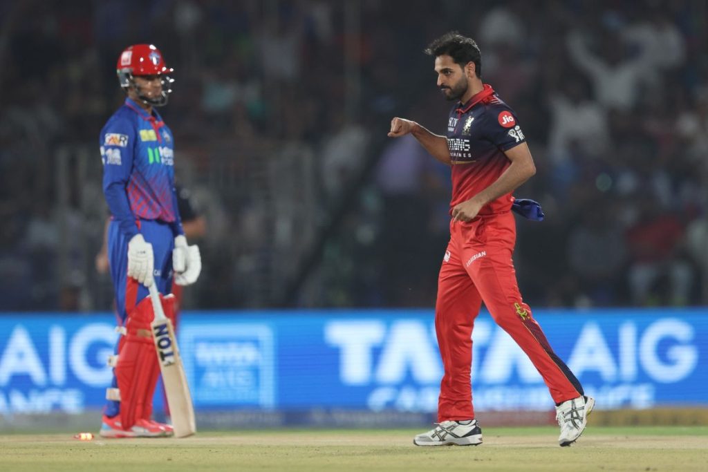RCB की गेंदबाजी में जोश हेजलवुड सबसे सफल रहे, जिन्होंने 4 विकेट झटके। भुवनेश्वर कुमार ने 3 विकेट लेकर दिल्ली की बल्लेबाजी की कमर तोड़ दी। वहीं रसिख सलाम डार, क्रुणाल पंड्या और सुयश शर्मा को 1-1 विकेट मिला।