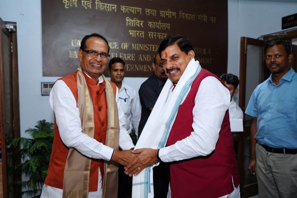 भोपाल/ दिल्ली। CM Dr. Mohan Met Shivraj Singh In Delhi: देश की राजधानी दिल्ली में आज मध्य प्रदेश के दो दिग्गजों की मुलाकात चर्चा में रही। एमपी के मुख्यमंत्री डॉ. मोहन यादव ने प्रदेश के पूर्व मुख्यमंत्री और वर्तमान केंद्रीय कृषि मंत्री शिवराज सिंह चौहान से भेंट की। इस दौरान सीएम डॉ. मोहन यादव ने शिवराज सिंह चौहान को वैदिक घड़ी भेंट की।