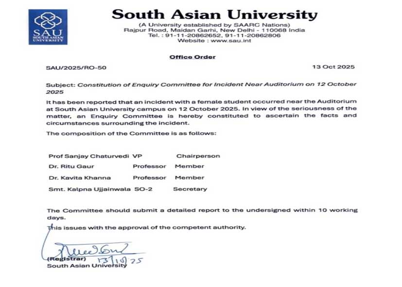 दिल्ली की साउथ एशियन यूनिवर्सिटी (SAU) में 18 साल की छात्रा के साथ हुई घटना 12 अक्टूबर की है। पीड़ित ने शिकायत में बताया कि चार आरोपियों ने यूनिवर्सिटी कैंपस में उसे पकड़ लिया और टी-शर्ट फाड़ दी। पीड़ित ने आगे कहा कि आरोपियों ने पैंट उतारने की भी कोशिश की और एक आरोपी ने जबरदस्ती अबॉर्शन पिल खिला दी। हालांकि, पुलिस ने बताया कि दवाई खिलाने का कारण अभी स्पष्ट नहीं हुआ है।