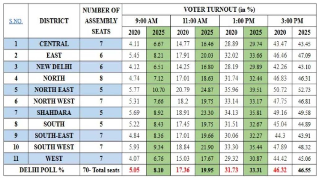 दिल्ली में साल 2015 के चुनाव में 67.47 प्रतिशत मतदान हुआ था। पिछले विधानसभा चुनाव 2020 में 62.60 फीसदी वोटिंग हुई थी।