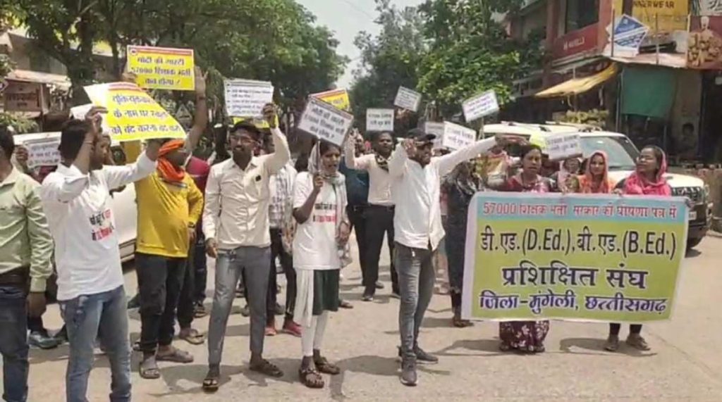 रोहित कश्यप, मुंगेली। छत्तीसगढ़ में शिक्षा व्यवस्था और बेरोजगारी को लेकर असंतोष लगातार बढ़ता जा रहा है। इसी कड़ी में कला संकाय प्रशिक्षित डीएड-बीएड कल्याण संघ (छत्तीसगढ़) ने आज मुंगेली में रैली निकालकर कलेक्टर को एक ज्ञापन सौंपा। ज्ञापन में 57000 शिक्षकों की शीघ्र भर्ती और 2008 के स्कूल सेटअप को बहाल रखने की प्रमुख मांग की गई। संघ ने चेतावनी दी है कि यदि जल्द इन मांगों पर कोई ठोस निर्णय नहीं लिया गया, तो राज्यभर में उग्र आंदोलन छेड़ा जाएगा।