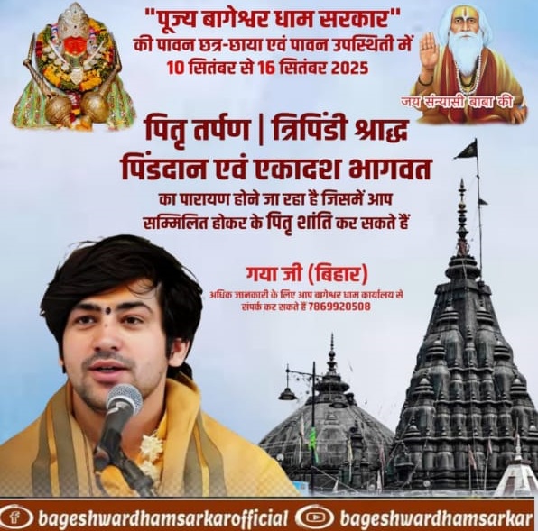 जानकारी के मुताबिक, पंडित धीरेंद्र शास्त्री 10 से 16 सितंबर 2025 तक बोधगया में प्रवास करेंगे। इस दौरान वे होटल प्रवास के बीच ही पितृ तर्पण, त्रिपिंडी श्राद्ध, पिंडदान और एकादश भागवत जैसे विशेष धार्मिक अनुष्ठानों का आयोजन करेंगे। बाबा का यह दौरा सिर्फ धार्मिक अनुष्ठानों तक सीमित नहीं होगा, बल्कि हजारों की संख्या में उनके अनुयायी भी उनके साथ बोधगया पहुंचेंगे और पितृपक्ष के पावन अवसर पर तर्पण एवं श्राद्ध की रस्मों में हिस्सा लेंगे।