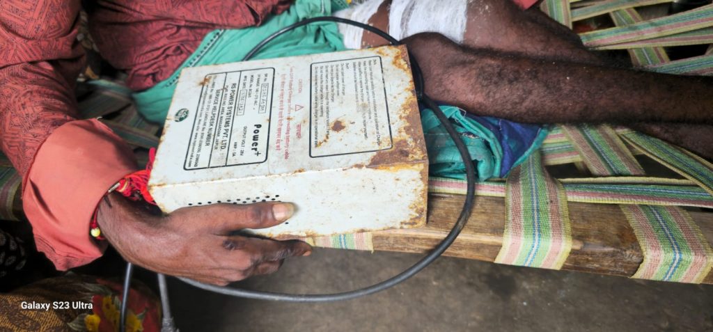 घटना 15 सितंबर की थी, घटना के बाद 108 के सहारे देवभोग अस्पताल ले जाया गया. डॉक्टर ने करेंट के उपचार के साथ ही टूटी हड्डी का प्राथमिक इलाज कर उसे जिला अस्पताल के लिए रेफर कर दिया. लेकिन परिवार में कोई पुरुष सदस्य अटेंड के लिए नहीं होना बता कर जिला अस्पताल या फिर उच्च अस्पताल नहीं गए. बूढ़ी मां और पत्नी मिथूला घर पर ही रह कर पीड़ित की देखभाल कर रहे हैं. पीड़ित ने बताया की उसका आधार कार्ड और आयुष्मान कार्ड खो गया है, इसके अभाव उसे ऊपर इलाज नहीं मिलेगी इसकी भी उसे आशंका है.