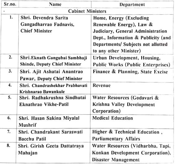 सीएम देवेंन्द्र फडणवीस (Devendra Fadnavis) ने पास गृह विभाग, उर्जा, सामान्य प्रशासन विभाग सहित अन्य विभाग रखें है. वहीं डिप्टी सीएम एकनाथ शिंदे (Eknath Shinde) शहरी विकास, आवास, सार्वजनिक निर्माण तथा उपमुख्यमंत्री अजित पवार (Ajit Pawar) को वित्त और राज्य उत्पाद शुल्क मंत्रालय दिया गया है. इसके अलावा बीजेपी के प्रदेश अध्यक्ष चंद्रशेखर बावनकुले राजस्व की विभाग की जिम्मेदारी दी गई है.