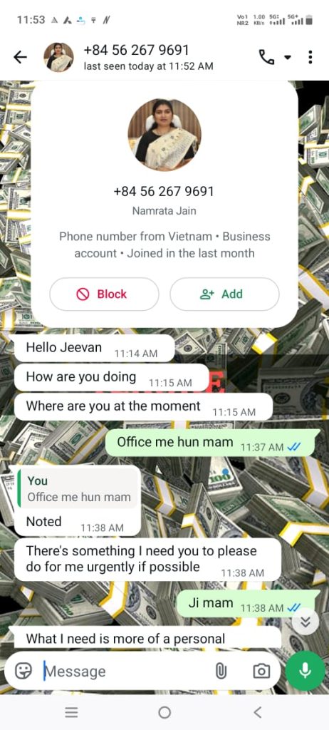 नारायणपुर। जिले में साइबर ठगी का एक गंभीर मामला सामने आया है, जहां अज्ञात व्यक्ति कलेक्टर नम्रता जैन के नाम से फर्जी व्हाट्सएप अकाउंट बनाकर आम नागरिकों और अधिकारियों से पैसों की मांग कर रहा है। इस मामले को गंभीरता से लेते हुए जिला प्रशासन ने सभी को सतर्क रहने की अपील की है।