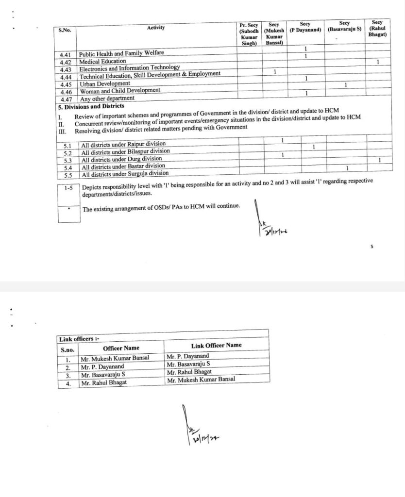 मुकेश कमार बंसल को रायपुर के साथ दुर्ग संभाग की जिम्मेदारी दी गई है. वहीं पी दयानन्द को बिलासपुर संभाग की जिम्मेदारी दी गई है. इसी तरह बसवराजू को सरगुजा और राहुल भगत को बस्तर की कमान सौंपी गई है.