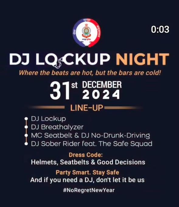 रायपुरवासियों के लिए राजधानी पुलिस ने खास पोस्टर जारी किया है. जिसका उद्देश्य 31 दिसंबर को सुरक्षित तरीके से नए साल 2025 का जश्न मनाना है. पोस्टर में लिखा है कि DJ Lockup Night ‘जहां धड़कनें गर्म हैं, लेकिन बार ठंडे हैं’. पुलिस ने DJ Lockup, DJ Breathalyzer, MC Seatbealt & DJ No-Drunk-Driving, DJ Sober Rider Feat The Safe Sqaud का इंतजाम किया गया है. ड्रेस कोड भी बताया गया है, हेलमेट, सीटबेल्ट और सही निर्णय.