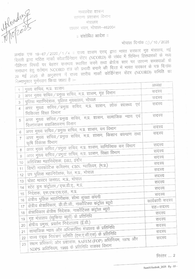 कमेटी में विभिन्न विभागों के शीर्ष अधिकारी शामिल किए गए हैं, जो समन्वित प्रयासों से ड्रग नियंत्रण को प्रभावी बनाएंगे