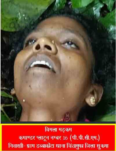 रवि साहू, नारायणपुर. अबूझमाड़ में पुलिस और नक्सलियों के बीच मुठभेड़ में एक महिला नक्सली ढेर हुई है. पुलिस ने मारी गई महिला नक्सली की शिनाख्ती सोढ़ी विमला, प्लाटून नंबर 16 पीपीसी सचिव के तौर पर की है. उस पर 8 लाख रुपए का इनाम घोषित था.