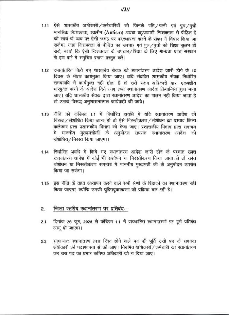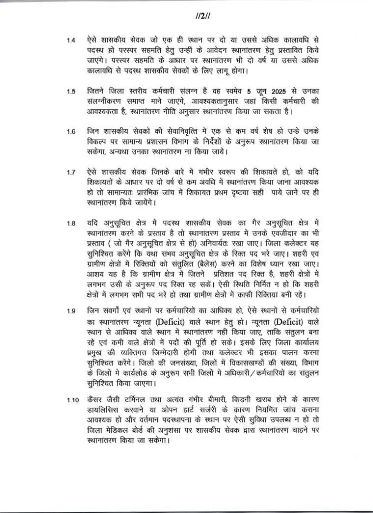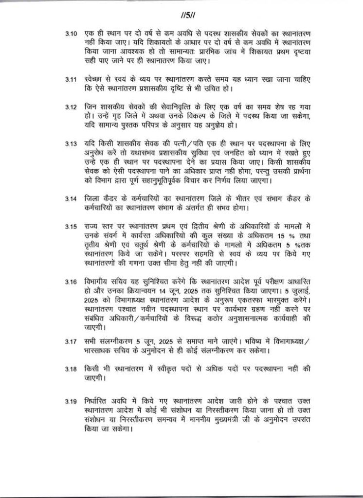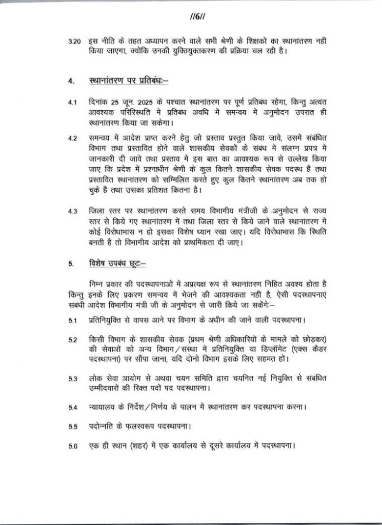 पढ़िए पूरी स्थानांतरण नीति वर्ष 2025