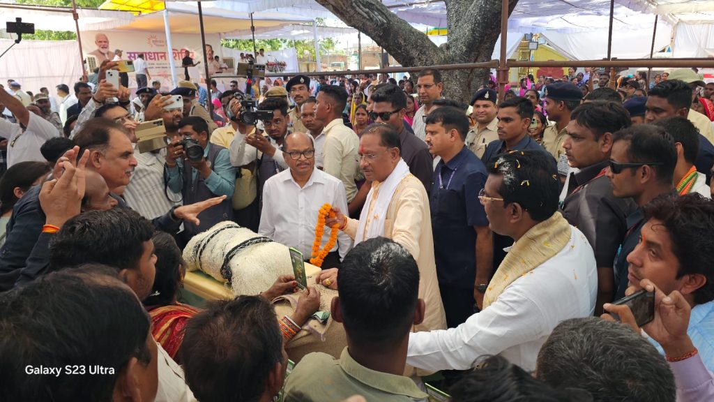 गरियाबंद। देश के प्रधानमंत्री और छत्तीसगढ़ के सीएम का नाम बच्चा बच्चा जानता है. प्रधानमंत्री और सीएम के लोकप्रियता की बानगी तब दिखी जब सीएम विष्णु देव साय गरियाबंद जिले के मड़ेली में आयोजित समाधान शिविर के दौरान आज अचानक आंगनबाड़ी निरीक्षण करने पहुंचे. उन्होंने बच्चों से पूछा आप जानते हैं हमारे देश के प्रधानमंत्री कौन हैं, सभी ने कहा कि नरेंद्र मोदी. प्रदेश के सीएम का नाम पूछने पर उन्होंने साय का नाम लिया. सीएम ने इस दौरान नौनिहालों के साथ समय बिताया, उन्हें दुलारा और चॉकलेट भी बांटे. सीएम का नन्ही बालिकाओं ने माथे पर तिलक लगाकर स्वागत किया. छोटे बच्चों के स्वागत से सीएम भाव विभोर हो गए और उन्हें आशीर्वाद दिया.