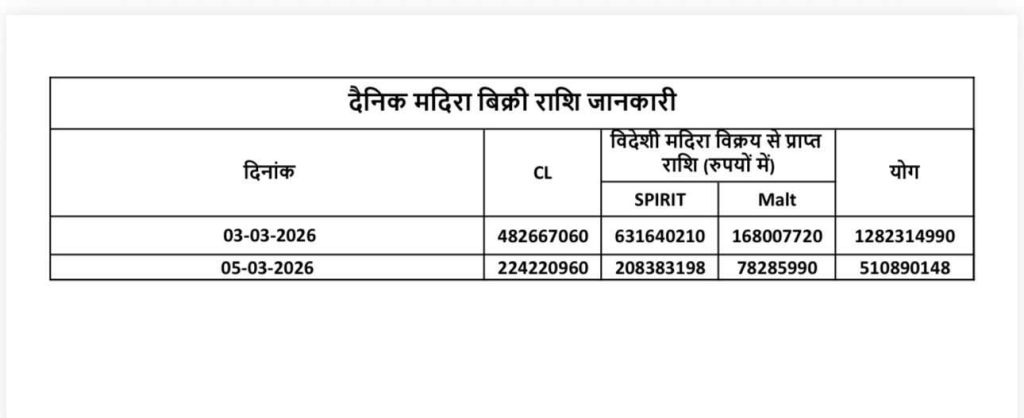 सत्या राजपूत, रायपुर। होली के मौके पर छत्तीसगढ़ में शराब की बिक्री ने नया रिकॉर्ड बना दिया। होली के दो दिनों में प्रदेश के मदिरा प्रेमी 1 अरब 79 करोड़ रुपये से ज्यादा की देसी और विदेशी शराब पी गए। जानकारी के अनुसार होली से एक दिन पहले 3 मार्च को ही 128 करोड़ रुपये से अधिक की शराब की बिक्री हुई, जो सामान्य दिनों की तुलना में कई गुना ज्यादा है। वहीं 5 मार्च को भी 51 करोड़ रुपये से अधिक की शराब बिकी।