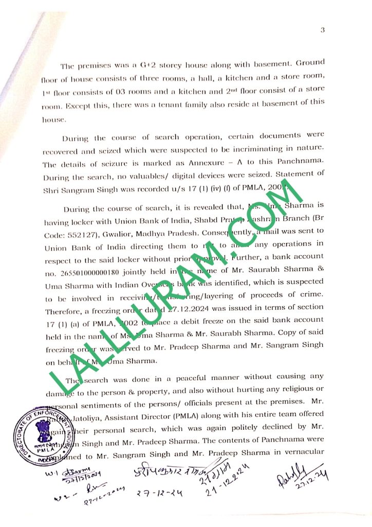 ED की कार्रवाई के इस एक्सक्लूसिव पंचनामे के मुताबिक जानिए किस तरह कार्रवाई की गई