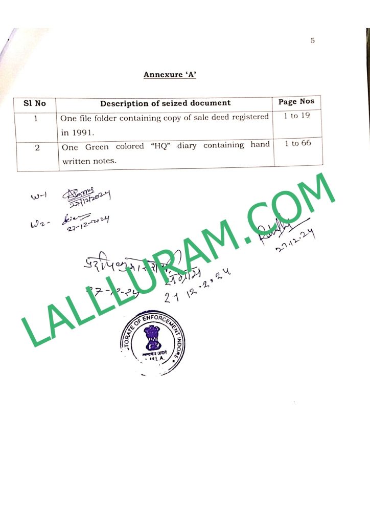 - ED की कार्रवाई में फ़ाइल फोल्डर मिला है ,जिसमे 1991 की रजिस्टर्ड एक सेल डीड की कॉपी जब्त की गई है।