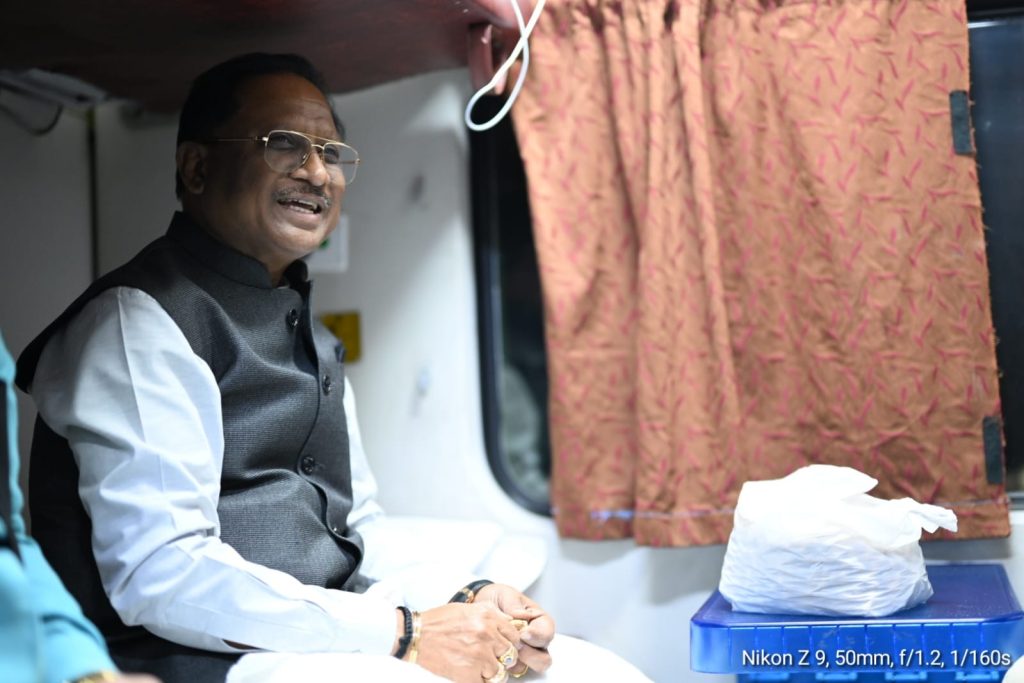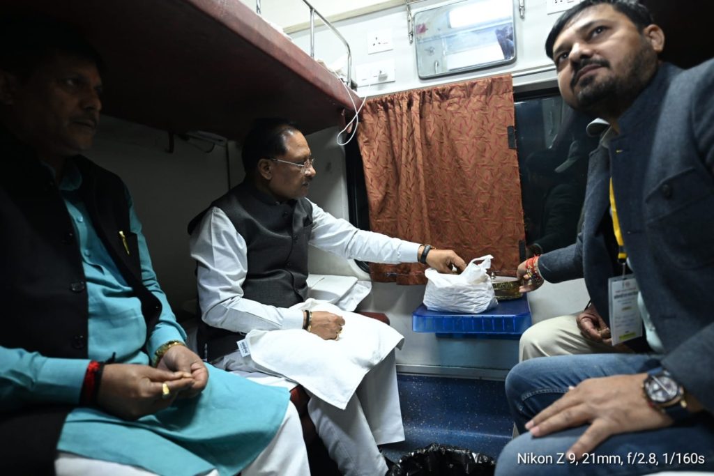 ट्रेन यात्रा के दौरान मुख्यमंत्री साय के साथ विधायक अनुज शर्मा, भैयालाल राजवाड़े और गुरु खुशवंत साहब भी मौजूद थे.