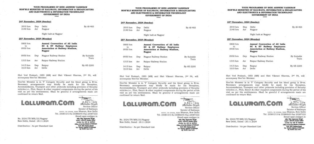अगले दिन 25 नवंबर को वो सुबह 8 बजे आयोजित एसटी-एससी एसोसिएशन के वार्षिक कार्यक्रम में शामिल होंगे. इसके बाद वे सुबह 9:50 बजे नागपुर से ट्रेन से रायपुर के लिए ट्रेन से रवाना होंगे. हालांकि ये स्पष्ट नहीं हो सका है कि ये विंडो ट्रेलिंग इंस्पेक्शन है या वे ट्रेन में यात्रियों से बातचीत करेंगे. क्योंकि जिस ट्रेन से वे रायपुर जा रहे उसे नागपुर से रायपुर पहुंचने में मजह 4 घंटे लगेंगे.