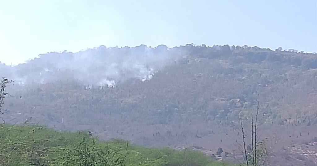 सुधीर सिंह राजपूत, मिर्जापुर. जिले के अंतिम छोर पर स्थित ड्रमंडगंज वन रेंज के महोगढ़ी वन क्षेत्र के कंपार्टमेंट नंबर दो के अलमी घाट जंगल में गुरुवार को संदिग्ध परिस्थितियों में आग लग गई. पहाड़ से धुआं सुलगता देख ग्रामीणों ने इसकी सूचना वन विभाग को दी. सूचना मिलने पर वन विभाग की टीम जंगल में पहुंचकर आग बुझाने में जुट गई है.