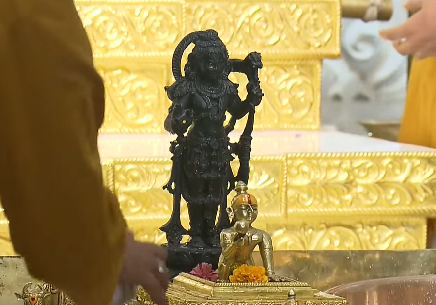 अयोध्या. राममंदिर में श्री रामलला की प्राण प्रतिष्ठा की पहली वर्षगांठ पर मंदिर में विशेष आयोजन किया गया है. प्राण प्रतिष्ठा वर्षगांठ महोत्सव की शुरुआत हो चुकी है. अनुष्ठान जारी है. मंदिर में रामलला का महाभिषेक किया जा रहा है. रामलला का दूध, दही, शहद और अन्य पवित्र सामग्री से अभिषेक किया जा रहा है. आप भी कीजिए रामलला के दर्शन.