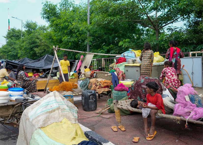 झुग्गियां छोड़कर तिरपाल के नीचे लेनी पड़ी शरण