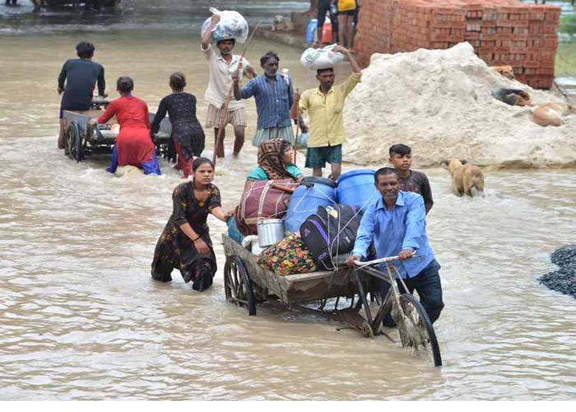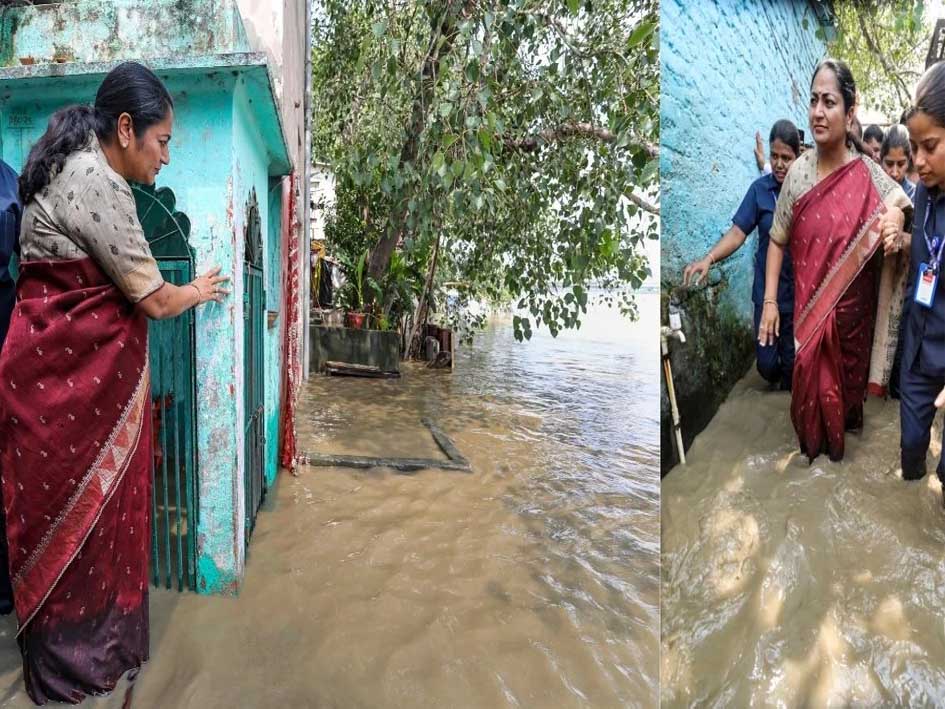बाढ़ग्रस्त बस्ती में पहुंचीं मुख्यमंत्री
